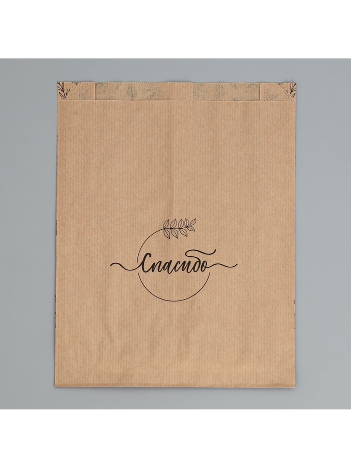 Пакет бумажный фасовочный, крафт, «Спасибо» 20×24×6 см без окна