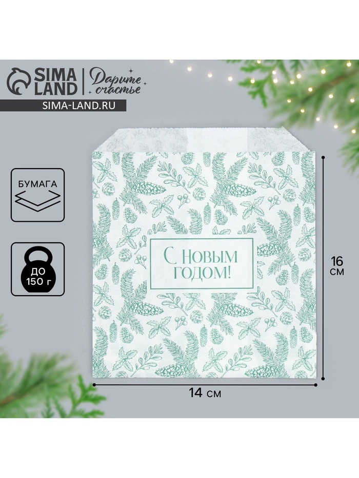 Пакет бумажный фасовочный, V-образное дно, «С новым годом», 14×16 см