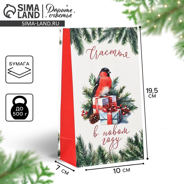Пакет подарочный без ручек «Счастья в Новом году», 10×19.5×7 см