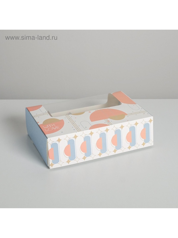 Коробка для эклеров, кондитерская упаковка, 5 вкладышей, With Love, 25.2 х 15 х 7 см