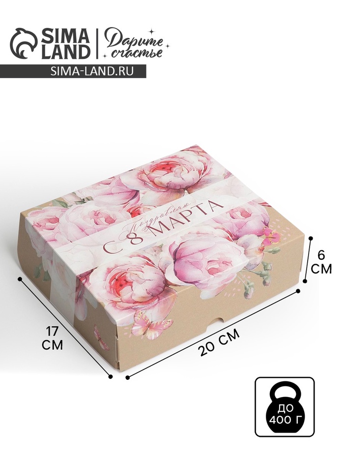 Кондитерская упаковка, коробка «Поздравляю с 8 марта», 17 х 20 х 6 см