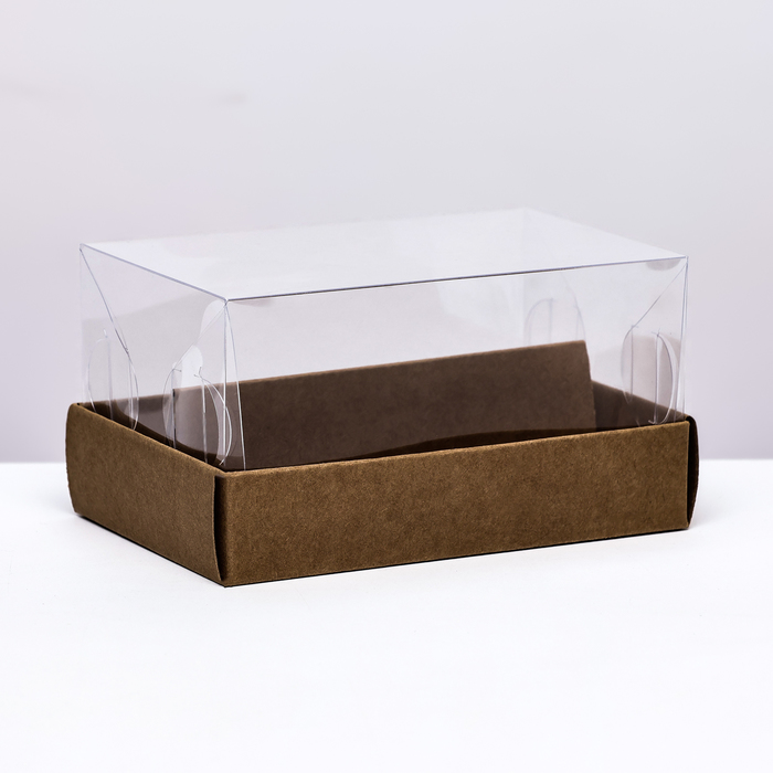 Коробка картонная с прозрачной крышкой, UPAK LAND крафт, 13×16×4 см