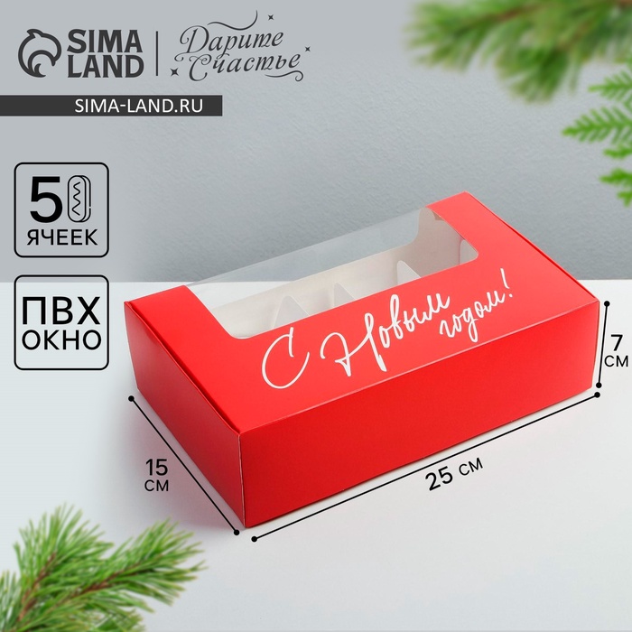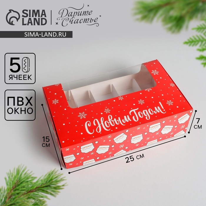 Коробка для эклеров с вкладышами - 5 шт «С Новым Годом!», 25,2 х 15 х 7 см