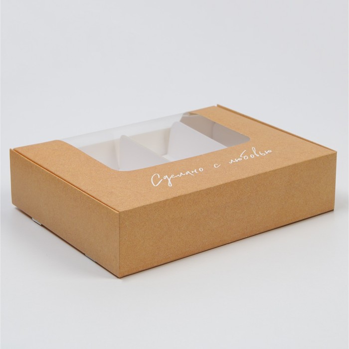 Кондитерская упаковка, коробка «Сделано с любовью», 14 х 14 х 3,5 см