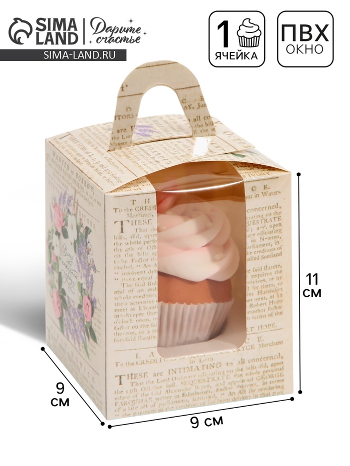 Коробка для капкейков, кондитерская упаковка, 1 ячейка «Что пожелает сердце», 9 х 9 х 11 см