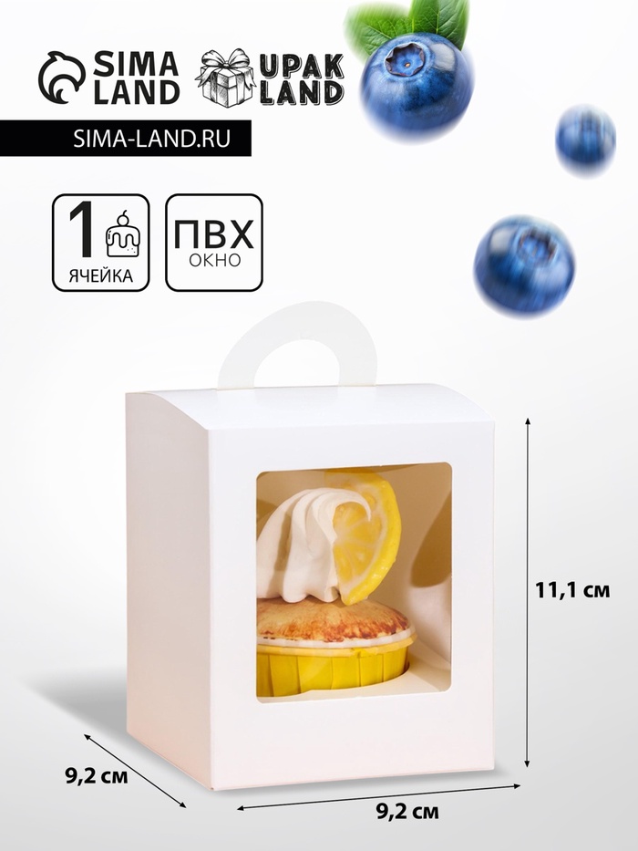 Упаковка под один капкейк, белая, 9.2×9.2×11.1 см