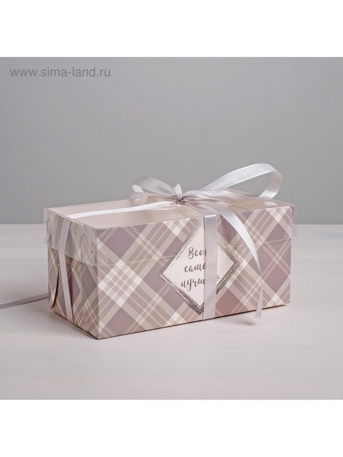 Коробка для капкейков, кондитерская упаковка, 2 ячейки «Всего самого лучшего», 16 х 8 х 7,5 см