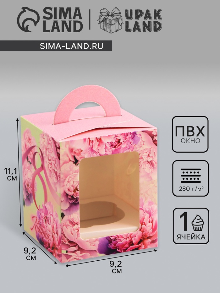 Коробка для 1 капкейка, «8 марта», 9.2×9.2×11.1 см