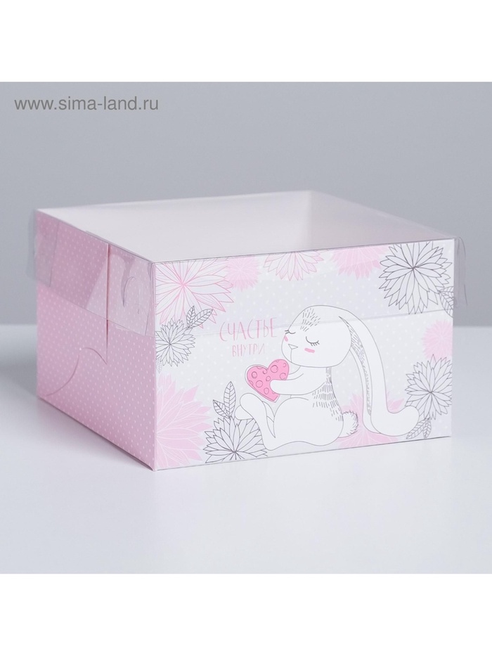 Коробка для капкейков, кондитерская упаковка, 4 ячейки «Счастье внутри», 16 х 16 х 10 см
