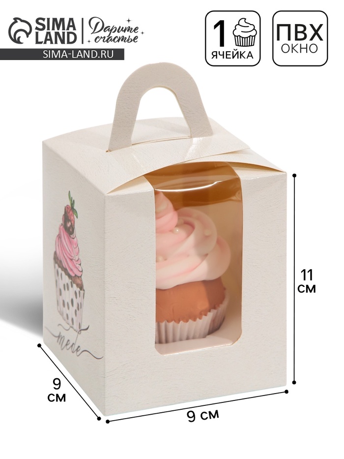 Коробка для капкейков, кондитерская упаковка, 1 ячейка «Тебе», 9 х 9 х 11 см