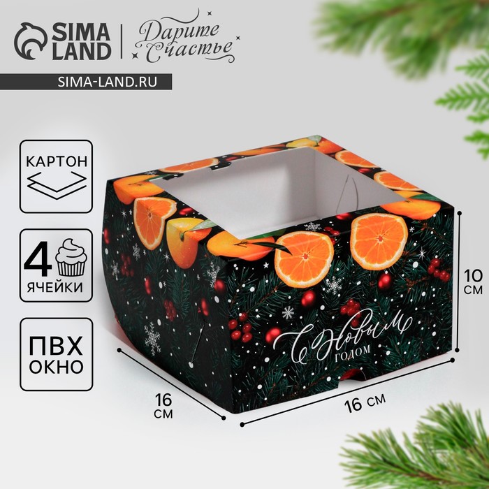 Коробка для капкейков складная с двусторонним нанесением «Апельсины», 16 х 16 х 10 см