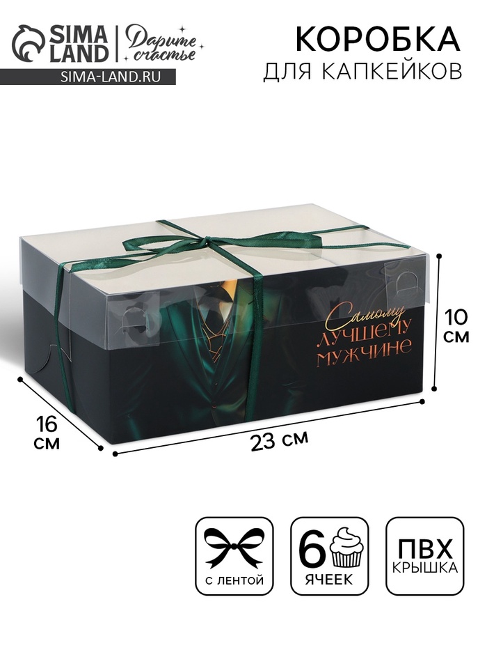 Коробка для капкейка, кондитерская упаковка, 6 ячеек «Стиль» 23 х 16 х 10 см