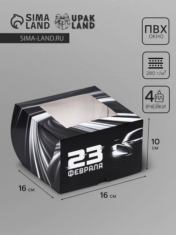 Коробка для 4 капкейков с окном, «Мужской», 16×16×10 см