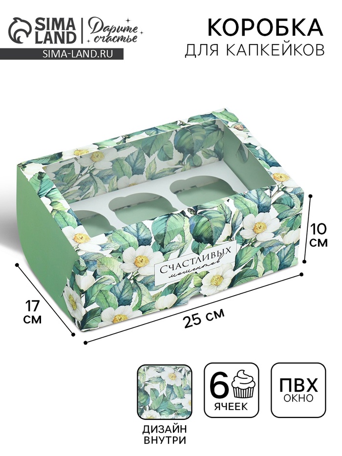 Коробка для капкейков, кондитерская упаковка двухсторонняя, 6 ячеек «Счастливых моментов», 25 х 17 х 10 см