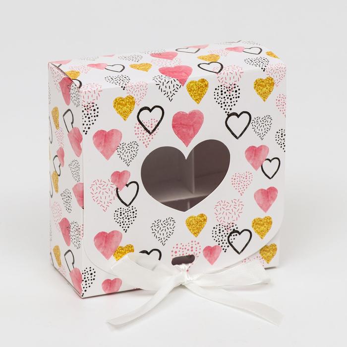 Подарочная коробка сборная с окном «Разноцветные сердечки», 11.5×11.5×5 см