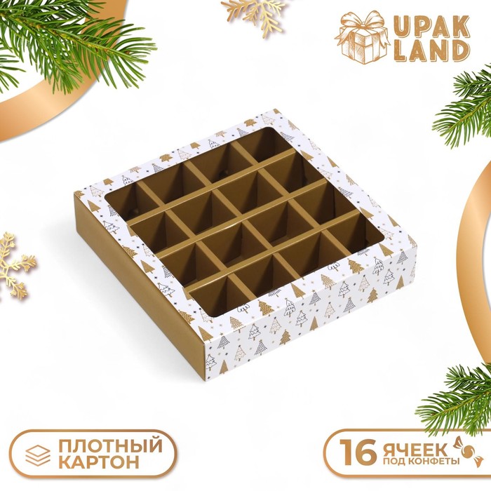 Коробка для конфет 16 шт. «Новогодние ёлки» подарочная новогодняя упаковка, 17.7×17.7×3.8 см