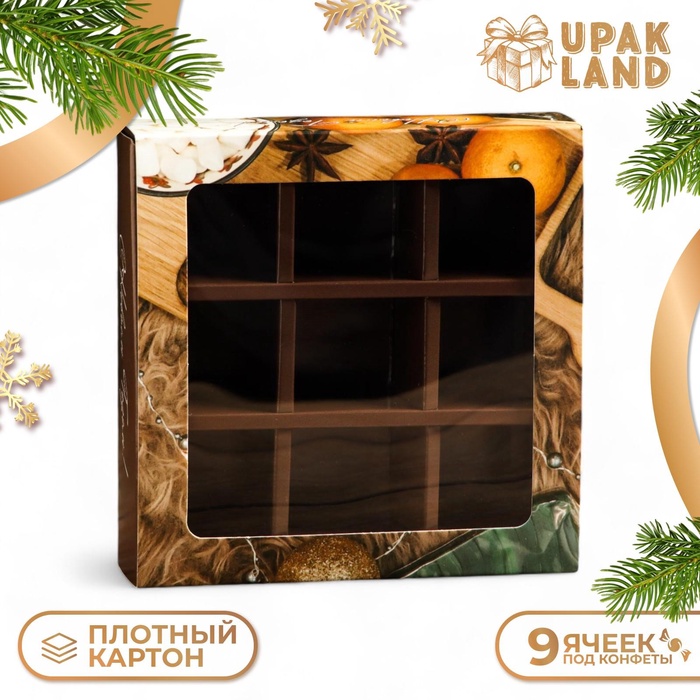 Кондитерская коробка с обечайкой 9 шт. «Рождественское утро», 13.7×13.7×3.5 см