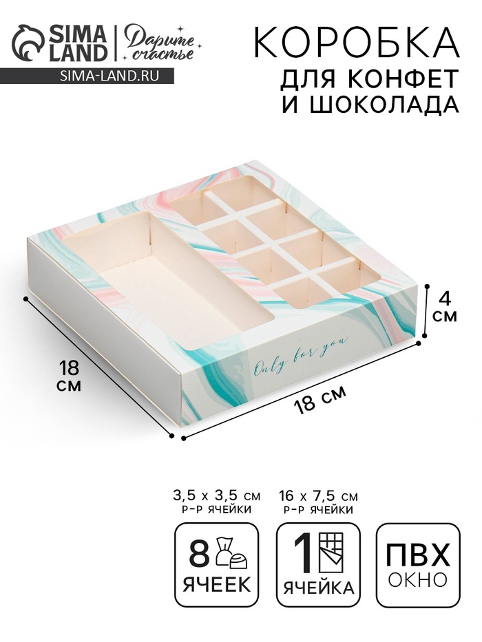 Коробка под 8 конфет и шоколад с ячейками, кондитерская упаковка, «Флюид» 18 х 18 х 4 см