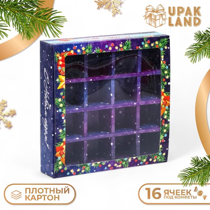 Упаковка для конфет 16 шт. «Яркий Новый Год», 17.7×17.7×3.8 см