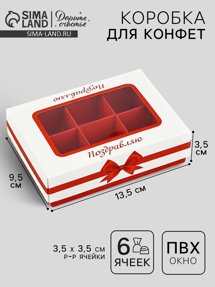 Коробка складная под 6 конфет «Поздравляю», 13.5×9.8×3.8 см