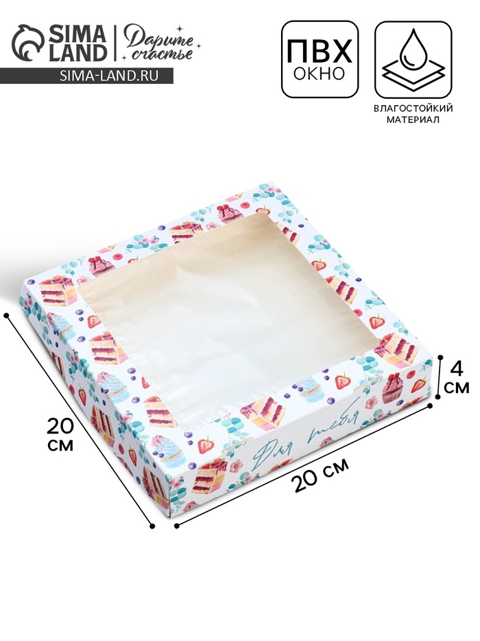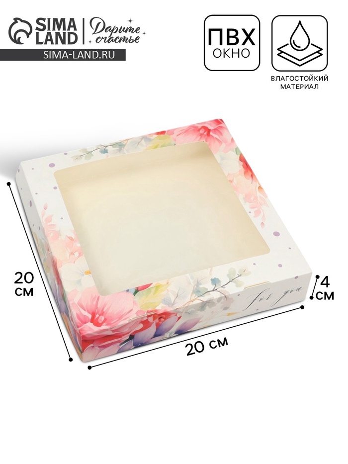 Кондитерская упаковка, коробка с ламинацией «Для тебя», 20 х 20 х 4 см