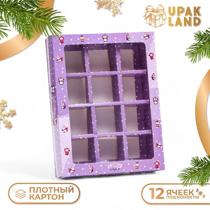 Новогодняя коробка - упаковка для конфет 12 шт. «Новогодний пингвин», 19×14.5×3.5 см