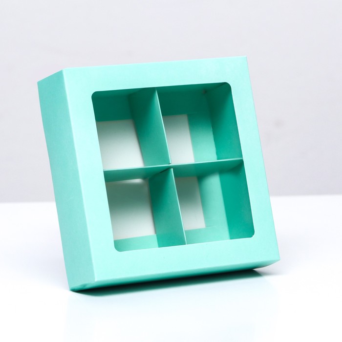 Коробка для 4 конфеты, мятный, 12.5×12.5×3.5 см