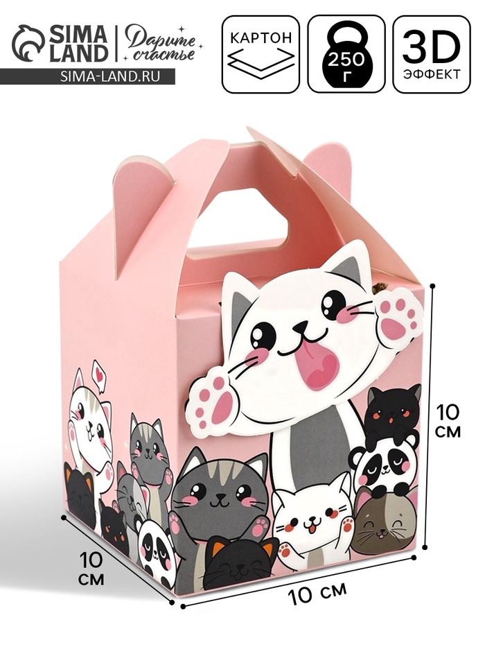 Подарочная коробка, упаковка «Котята» 10×10×10 см