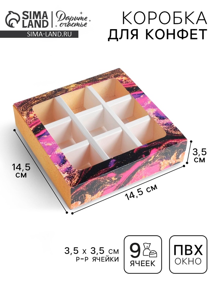 Коробка для конфет, кондитерская упаковка, 9 ячеек, «Флюид» 14.5 х 14.5 х 3.5 см