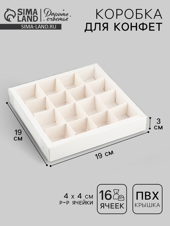 Коробка под 16 конфет с ячейками «Белая», 19 х 19 х 3 см