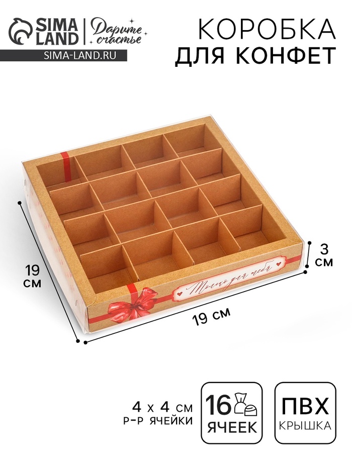Коробка под 16 конфет с ячейками «Только для тебя», 19 х 19 х 3 см