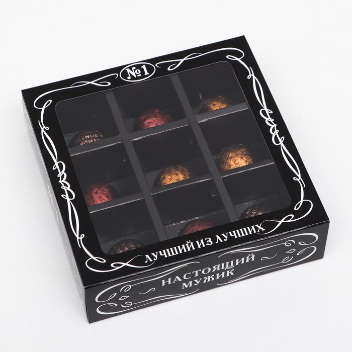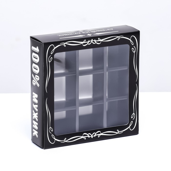 Коробка для конфет 9 шт., «Мужская», чёрная, 13.7×13.7×3.5 см