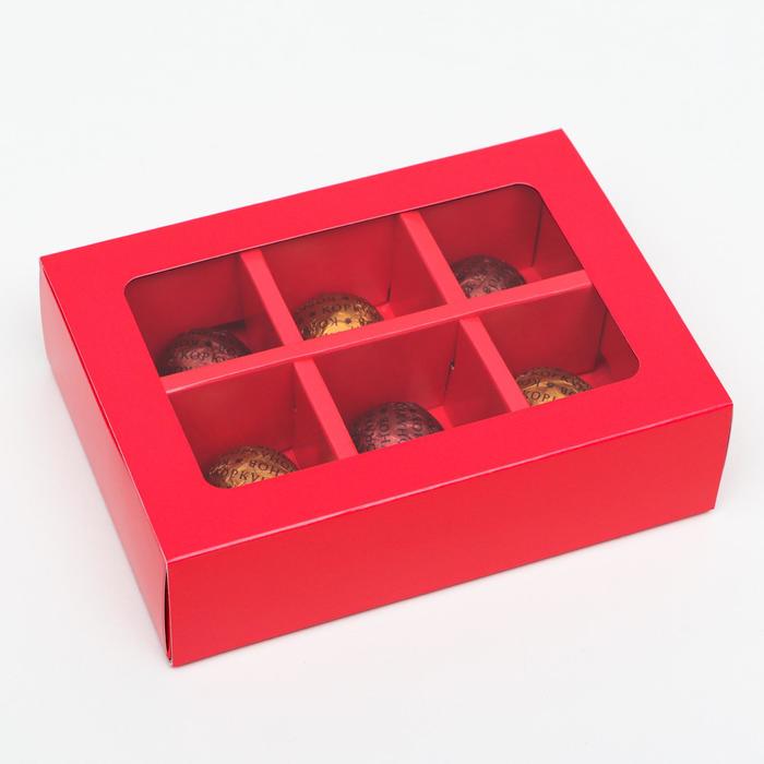 Коробка для конфет 6 шт., алый, 13.7×9.85×3.86 см