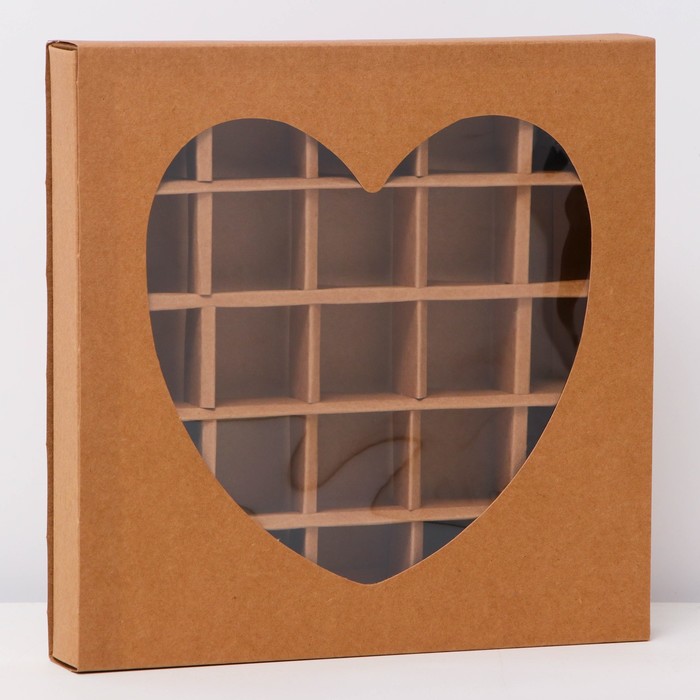 Коробка для 25 конфет, крафт, сердце, 22×22×3.5 см