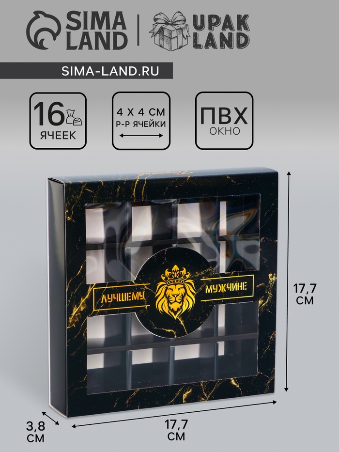 Коробка для конфет, 16 шт., «Мужская», чёрная, 17.7×17.7×3.8 см
