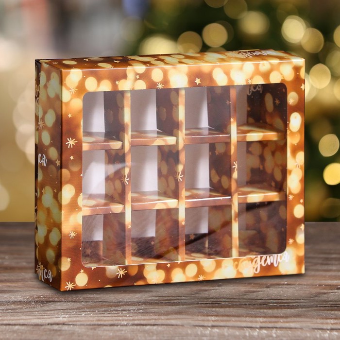 Коробка под 16 конфет с ячейками «Яркий новый год» 17,7 х 17,7 х 3,8 см