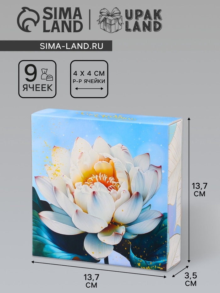 Коробка для 9 конфет, «Цветы» 13.8×13.8×3.8 см