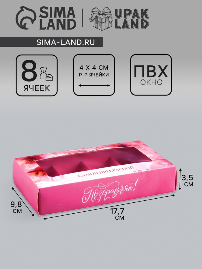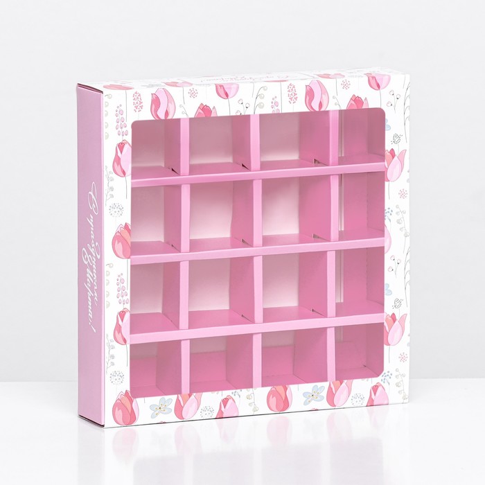 Коробка для 16 конфет, « 8 марта» 17.7×17.7×3.8 см