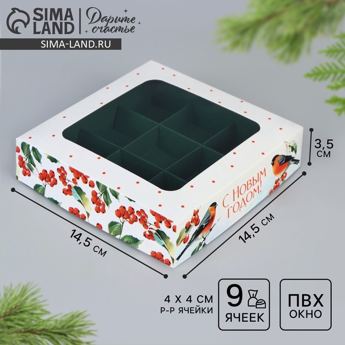 Коробка под 9 конфет «С Новым годом», снегири, 14.5 х 14.5 х 3.5 см