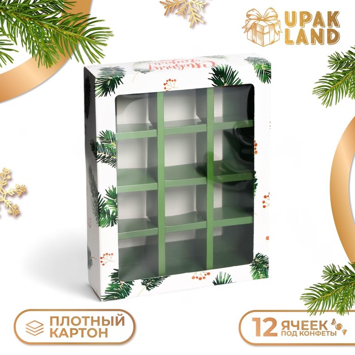 Коробка под 12 конфет «Елочные ветки», 19×15×3.6 см