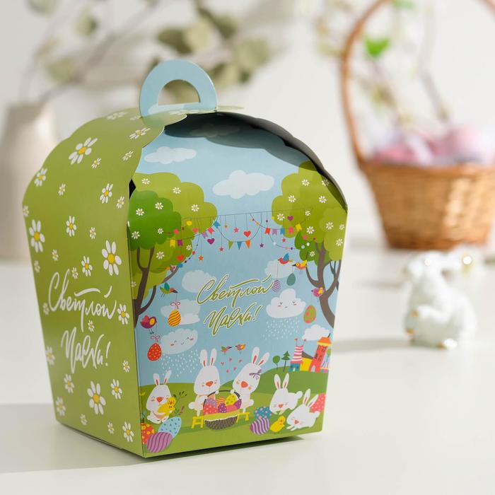 Пасхальная подарочная коробочка «Светлой Пасхи!», кролики, ромашки, 15×15×18 см