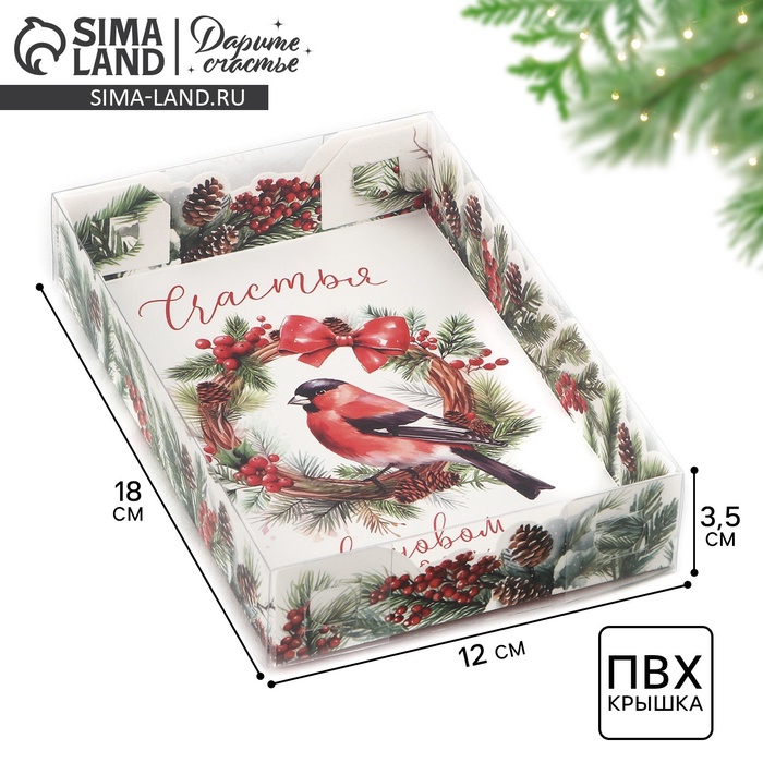 Коробка для макарун «С Новым годом», веточки, 12 х 12 х 3.5 см