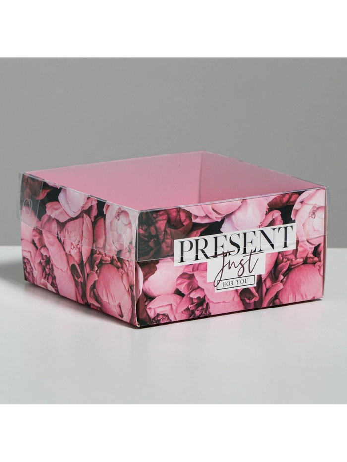 Коробка под бенто-торт с пластиковой крышкой, кондитерская упаковка «Present», 12 х 6 х 11.5 см