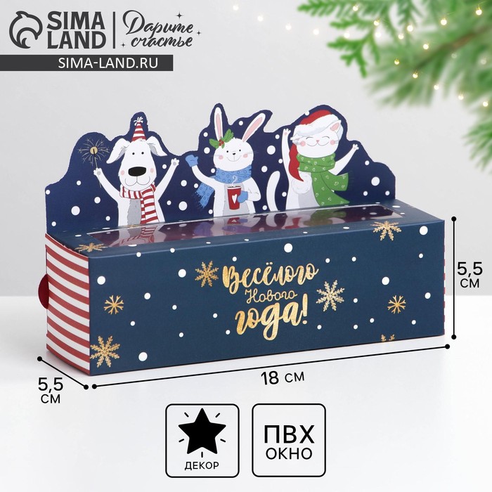 Коробка для макарун «Весёлого нового года!», 18×5.5×5.5 см