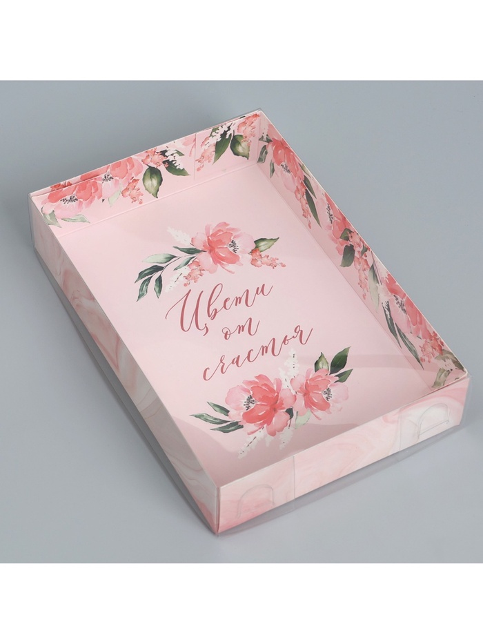Кондитерская упаковка, коробка для макарун с пластиковой крышкой, «Цвети от счастья», 18 х 12 х 3.5 см