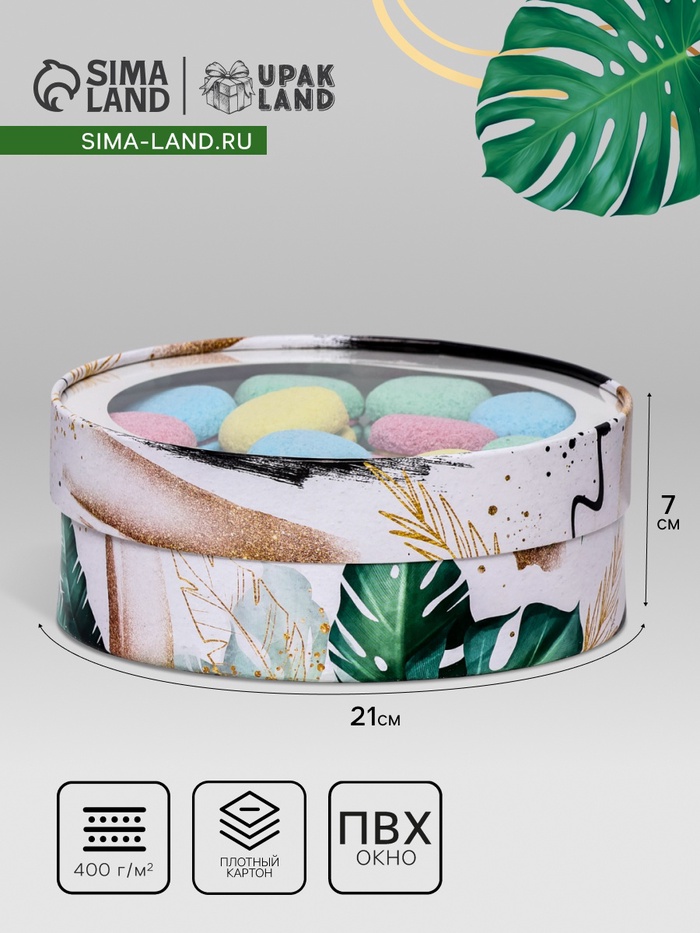 Коробка для макарун тубус с окном «Тепла и уюта», 20 х 20 х 5 см