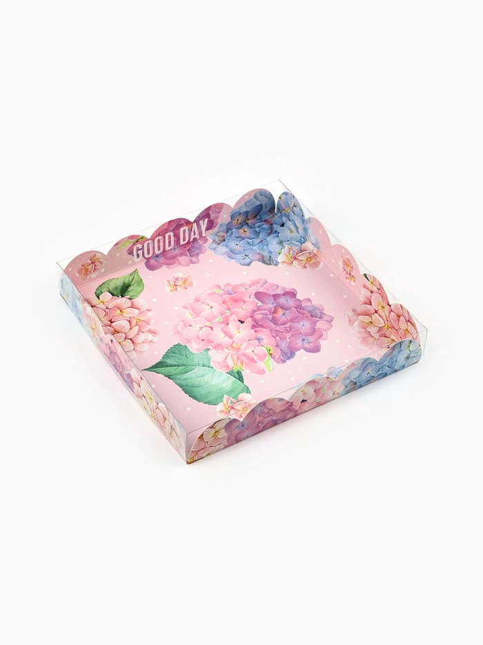 Коробка для печенья, кондитерская упаковка с пластиковой крышкой, Good day, 18 х 18 х 3 см