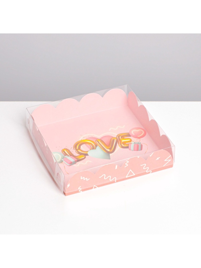 Коробка для печенья, кондитерская упаковка с пластиковой крышкой, «Воздушная любовь», 13 х 13 х 3 см