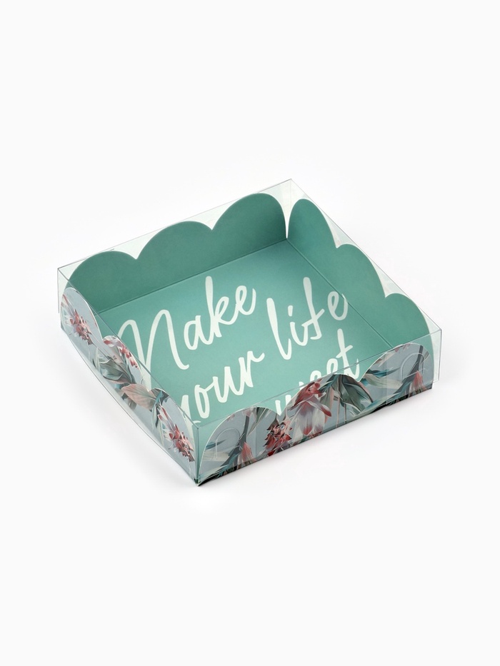 Коробка для печенья, кондитерская упаковка с пластиковой крышкой, Make your life sweet, 10.5 х 10.5 х 3 см