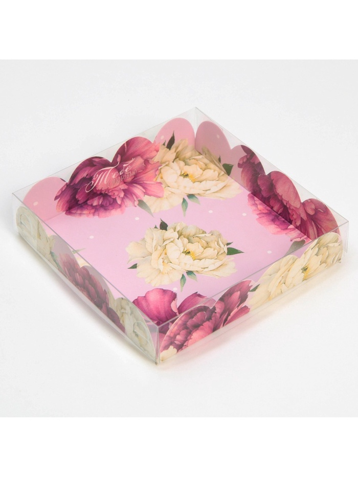 Коробка для печенья, кондитерская упаковка с пластиковой крышкой, «Тебе с любовью», 13 х 13 х 3 см